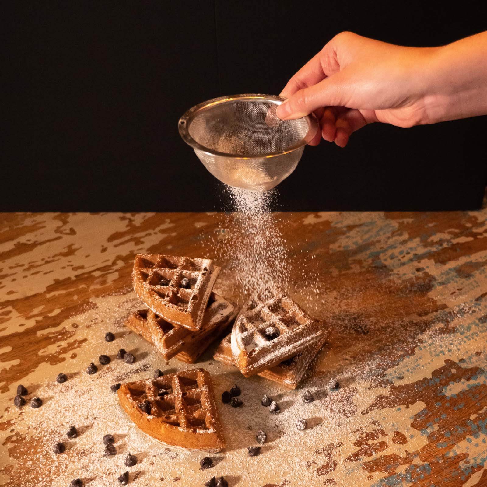 Esta receta posee las características ideales de los waffles belgas con chispas de chocolate, siendo húmedos y suaves por dentro y crujientes por fuera, añadiéndole chispas de chocolate que proveen un irresistible sabor. Siendo ideales para que los acompañes en el desayuno y lo personalices como tu desees.